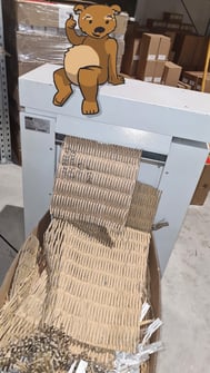 Unser Shredder macht aus vorhandenen Abfallkartons wieder neue Polstermaterialen, um ihre wertvollen neuen Bio-Helfer zu schützen. Diese werden als Puffer eingesetzt. So sparen wir im Moment ca.