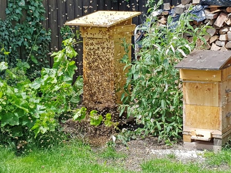 So ein Schwarm ist eigentlich eine Geburt, denn da entsteht wieder ein neues Volk. In der alten Wohnung ist nun meist eine neue Königin eingezogen und der Kreislauf beginnt wieder von