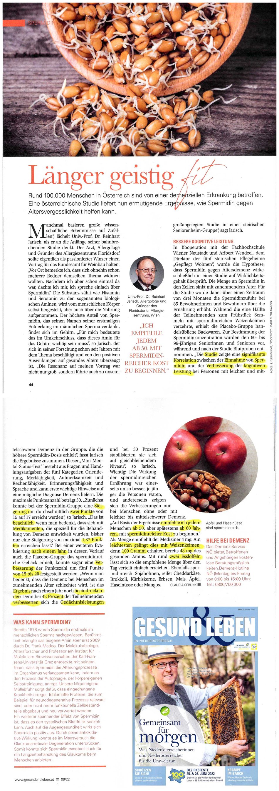 österreichische, französische und englische Kliniker und Forscher die Ergebnisse eines zwanzigjährigen klinischen Beobachtungszeitraums (1995–2015), in welchem die Aufnahme von Spermidin in den